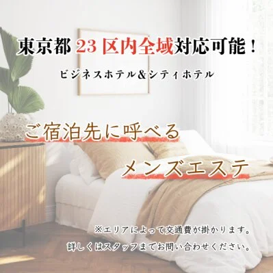 - 派遣型メンズエステLuminous東京は東京都23区内全域対応可能! ご利用中のビジネスホテルやシティホテル等までセラピストを派遣させて頂きます!